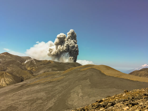 Совсем недавно вулкан Эбеко извергнул столб пепла ввысь более чем на 2 км. Это случилось 30 августа текущего года. Преобладал юго-восточный ветер, поэтому пепел разошелся на пять километров в сторону ветра. Для авиации был объявлен оранжевый код опасности. Перед этим вулкан Эбеко выбрасывал продукты своей жизнедеятельности еще в 2012 году. Потом затих до октября 2016 года.