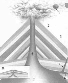 В зависимости от того, какое количество соотношения извергаемых вулканических продуктов и вязкости лав выделяют несколько типов извержений. Это: гавайский тип – эффузивный, стромболианский – смешанный, купольный - экструзивный и вулканский.