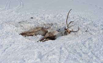 Согласно фотографиям, сделанным с воздуха, хорошо видно, что дикие северные олени сильно отощали, а некоторые из них едва держатся на ногах. Обильные пеплопады способны вывести оленьи пастбища из строя на несколько десятилетий. Лишайники и мхи – это основные показатели чистоты окружающей среды, они как губка впитывает продукты извержения, которые затем с пищей попадают в организм оленей, поражая органы пищеварения и дыхания.