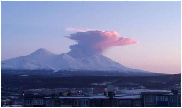 На днях случилось то, чего не ждали. Вулкан Жупановский, который находится на Камчатке, выбросил столб пепла на высоту до восьми километров. Специалисты говорят, что шлейф пепла растянулся на сто километров. Все произошло на днях ночью. Столб пепла поднялся очень высоко, да к тому же растянулся на сто километров к северо-западу от самого вулкана. Информация об этом была оглашена в филиале Геофизической службы РАН на Камчатке.